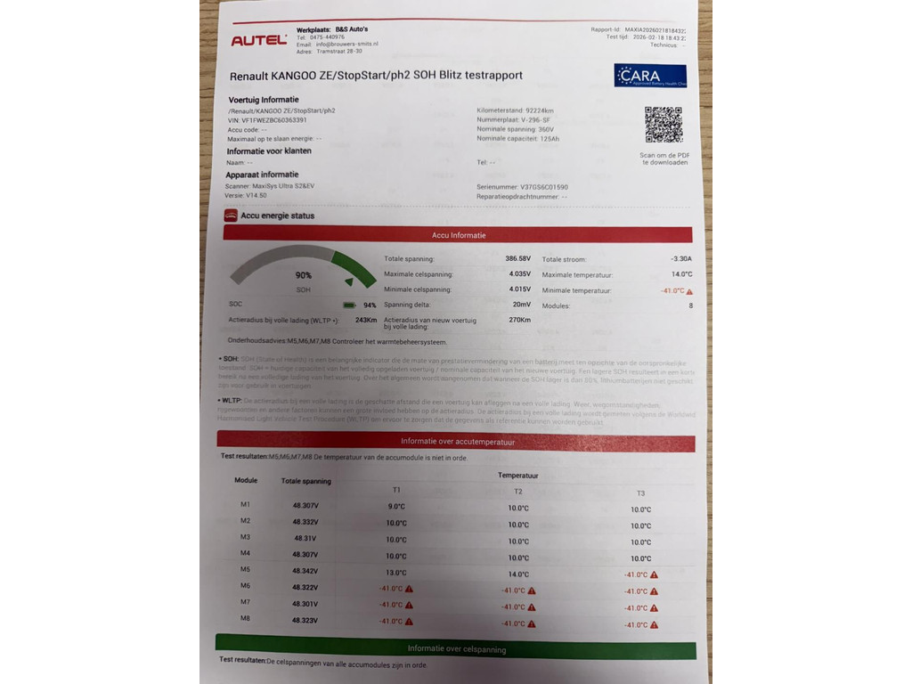 Volledig elektrische Kangoo, dus emissievrij! De Renault ziet er van binnen keurig uit en heeft een aantal fijne opties. Zo vindt je cruise control, airco, navigatie, radio/CD parkeersensoren achter, dubbele deuren achter en een schuifdeur rechts. De laadruimte is keurig afgewerkt. Het volgende onderhoud moet plaats vinden bij 129000km of op 11-6-2027. De actieradius van deze bestelauto ligt in de praktijk op ca 190 km. Deze Kangoo heeft op de linker zijde een schade welke op de de foto zichtbaar is.